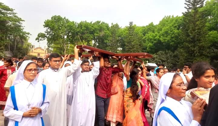 বেনীদুয়ার ধর্মপল্লীতে আদিবাসী ভক্তিমূলক মুণ্ডারী গান, বাজনা এবং নাচের মাধ্যমে যুব ক্রুশকে গির্জাঘরের নির্দিষ্ট স্থানে স্থাপন করা হয়।