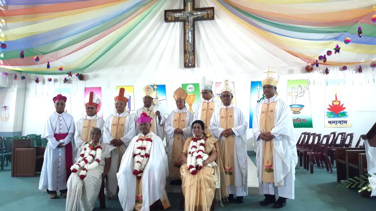 পবিত্র খ্রিষ্টযাগে প্রধান পৌরহিত্য করেন ঢাকার আর্চবিশপ বিজয় এন. ডি’ক্রুজ। তাঁর সাথে আরো যারা উপস্থিত ছিলেন চট্টগ্রাম মহাধর্মপ্রদেশের আর্চবিশপ লরেন্স সুব্রত হাওলাদার, খুলনা ধর্মপ্রদেশের বিশপ রমেন বৈরাগী, ময়মনসিংহ ধর্মপ্রদেশের বিশপ পল পনেন কুবি, সিলেট ধর্মপ্রদেশের বিশপ যোসেফ শরৎ গমেজ, ঢাকার সহকারী বিশপ সুব্রত বি. গমেজ ও অবসরপ্রাপ্ত বিশপ থিওটোনিয়াস গমেজ।
