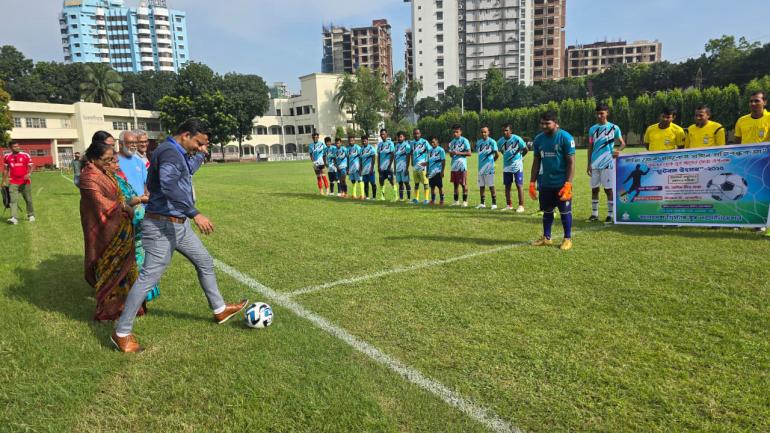 ঢাকার মোহম্মদপুরে সরকারি শারীরিক শিক্ষা কলেজ মাঠে সকাল ৮টায় শুরু হয় ১২টি দলের অংশগ্রহণে ফুটবল টুর্নামেন্ট।