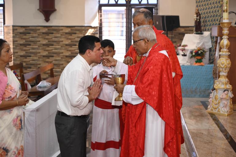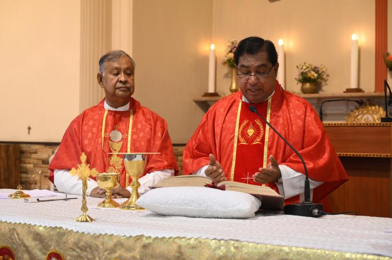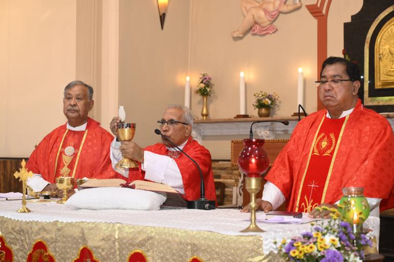 পবিত্র খ্রীষ্টযাগ উৎসর্গ করেন মহামান্য বিশপ টমাস ডি’সুজা, ধর্মপল্লীর পালপুরোহিত ফাদার কুরিয়ান এমপ্রাইল এসজে এবং সহকারী পালপুরহিত ফাদার অনিল গোমেস এসজে।