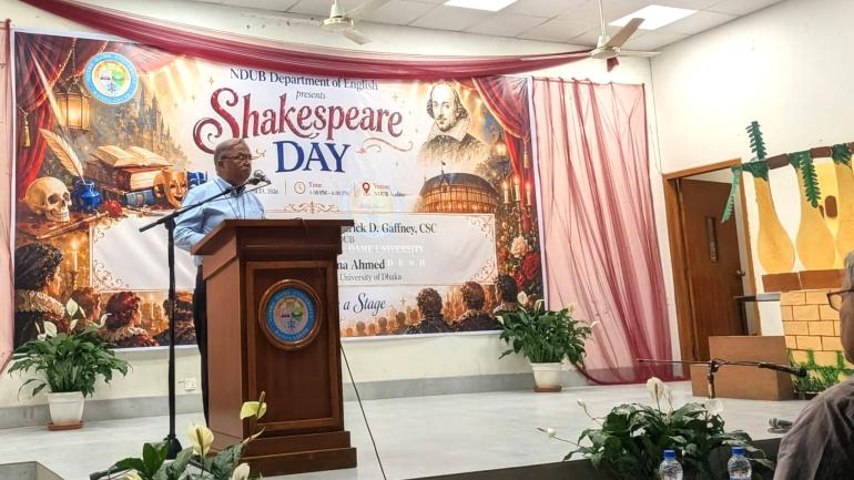 গত ২৩ এপ্রিল ২০২৬ খ্রিস্টাব্দ, নটরডেম বিশ্ববিদ্যালয় বাংলাদেশ (এনডিইউবি) - এর ইংরেজি বিভাগের আয়োজনে নিজস্ব মিলনায়তনে পালিত হলো শেক্সপিয়ার দিবস।