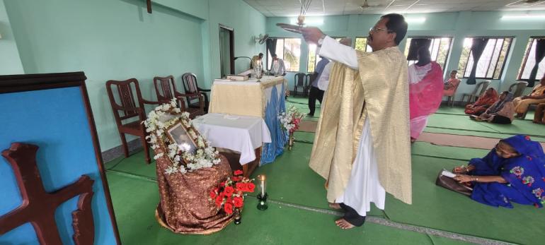 পবিত্র খ্রীষ্টযাগ উৎসর্গ করেন রাঘবপুর ধর্মপল্লীর পালপুরোহিত ফাদার যোসেফ টোপ্প এস.জে., ফাদার থোট্টাম এস.জে, ব্রাদার স্টিফেন কিসকু। এছাড়াও উপস্থিত ছিলেন অগণিত খ্রীষ্টভক্ত এবং স্থানীয় অসহায়, দুঃস্থ ও পীড়িত মানুষজন।