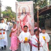 উক্ত এই সমাজের আবাসিক ছাত্রীরা প্রবেশিকা নৃত্য, বরণ, আরতি চন্দনের টিকা দিয়ে পুরোহিত ও সিস্টারগণকে স্বাগত জানান।